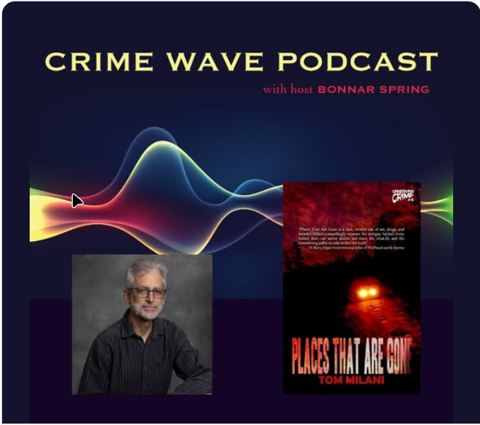 This week on Crime Wave: In Tom Milani’s debut novel, Places That Are Gone, Bennett Wilder’s life feels small and predictable—until a chance encounter with Liz Messina, a hitchhiker with a troubled past, jolts him from his routine. Liz is on the run, with dangerous debts and a child to protect. Liz’s secrets drag Bennett into a dangerous world of debts, violence, and hidden alliances. How far will he go to save a woman he hardly knows—and can he survive the road that leads home?